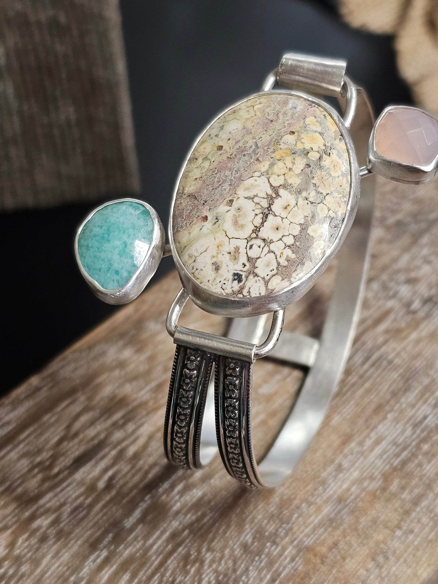 Ocean Jasper, rose quartz, amazonite stones sounded by Sterling Silver