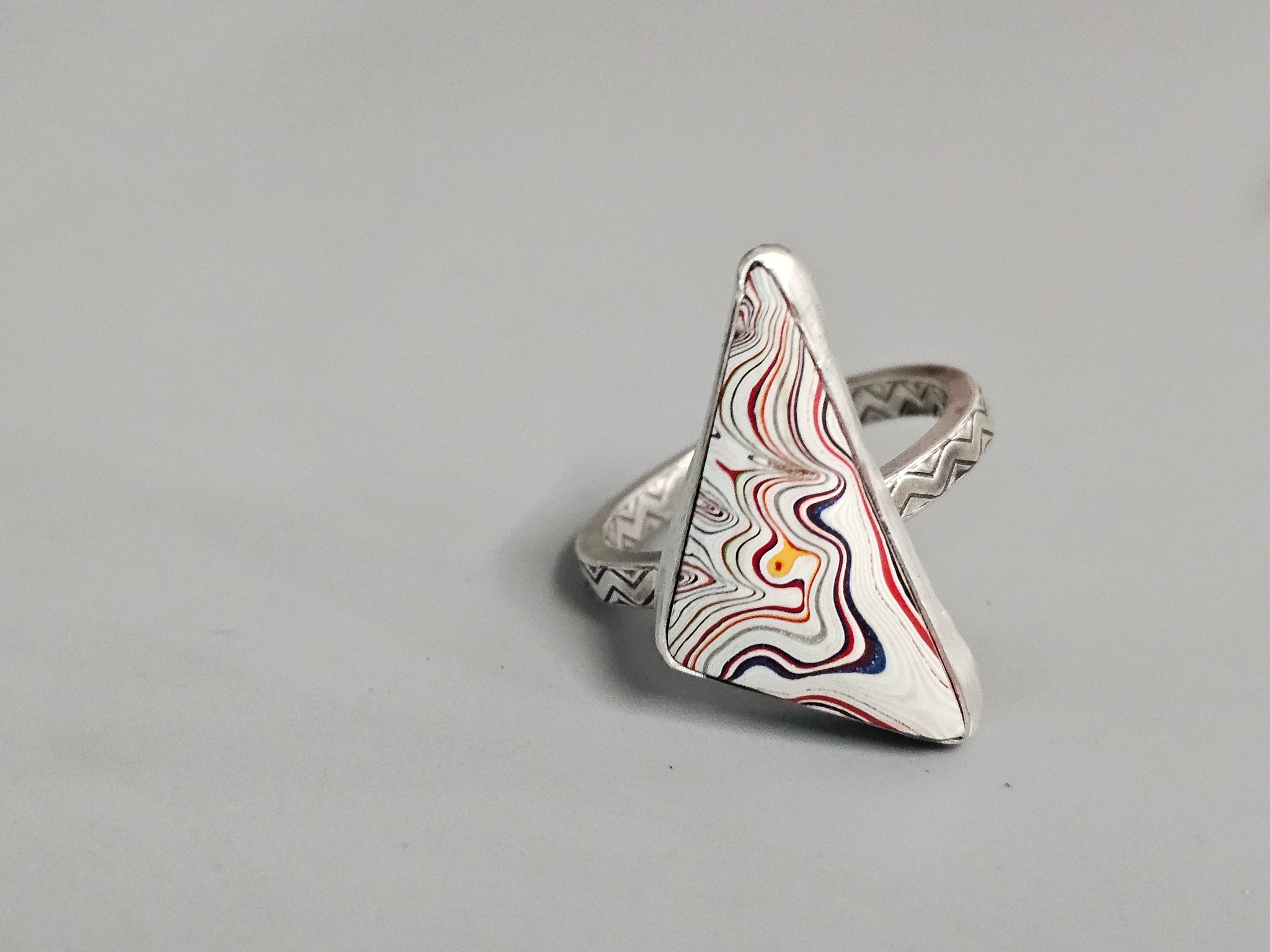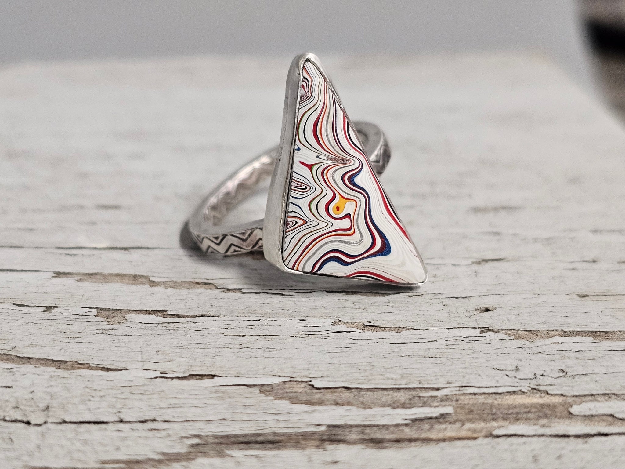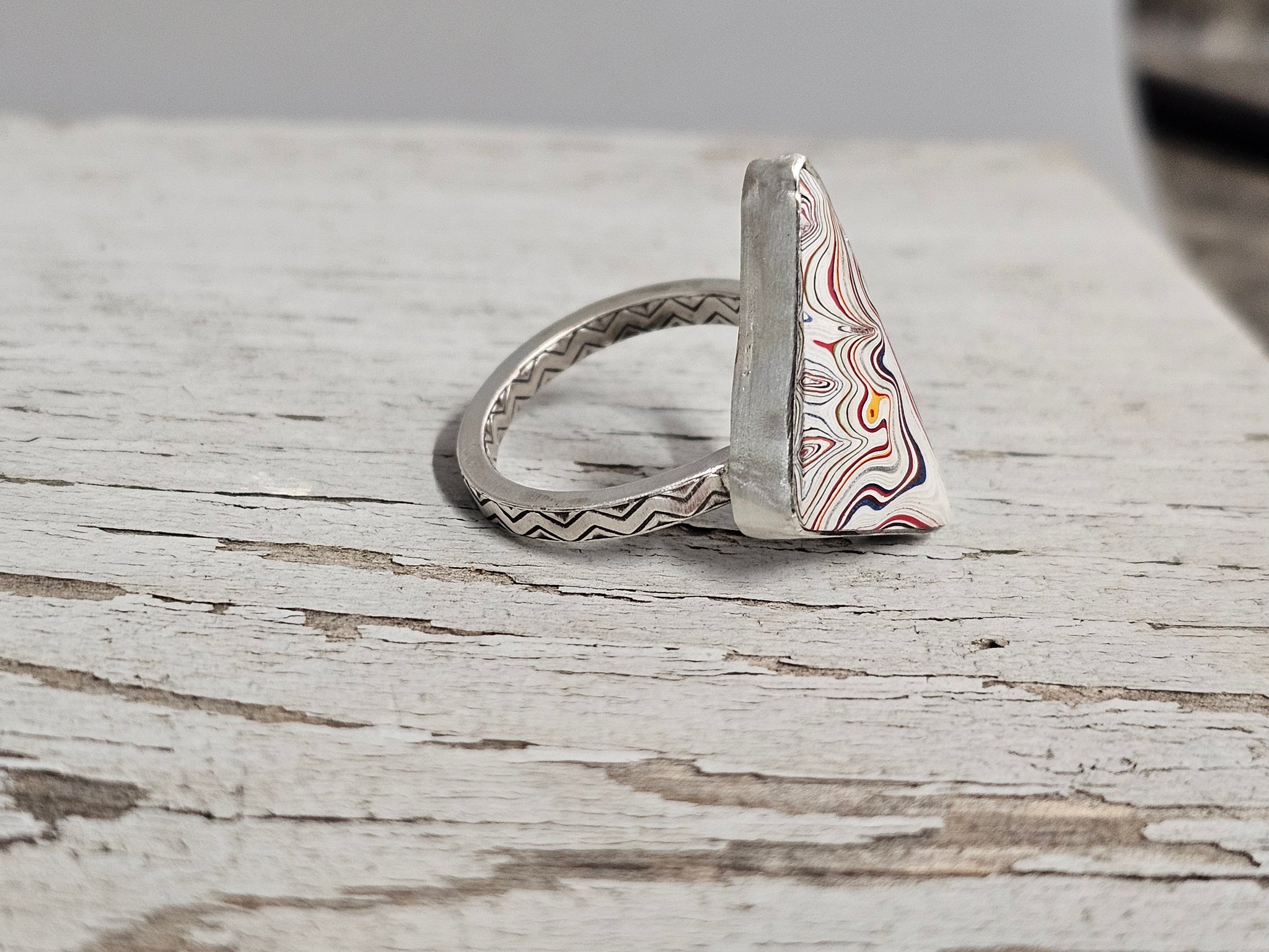 Fordite (ford paint) Triangle Ring, set with a plain bezel to accent that beautiful Stone.