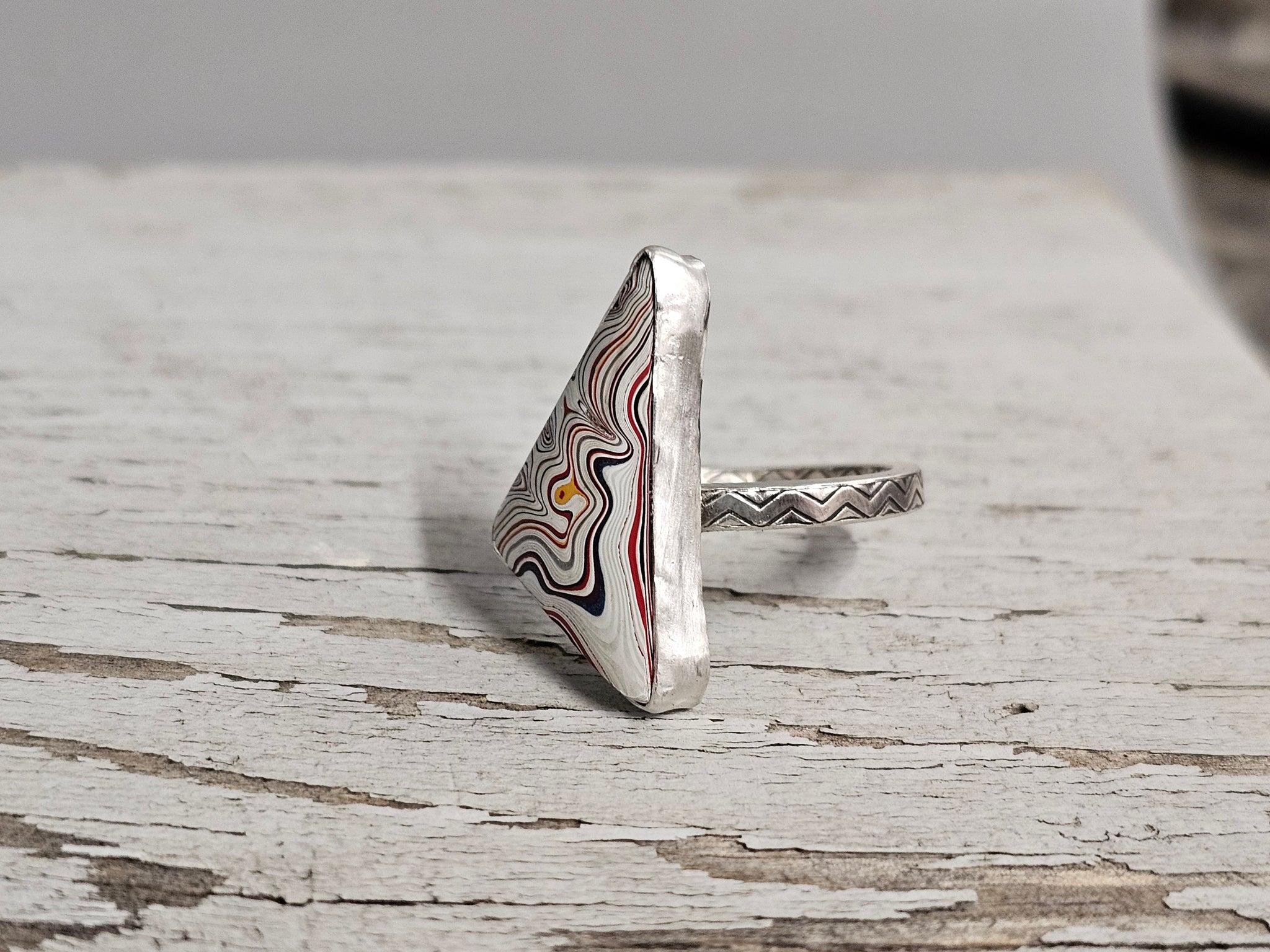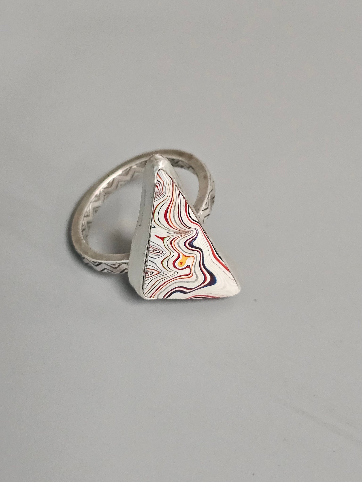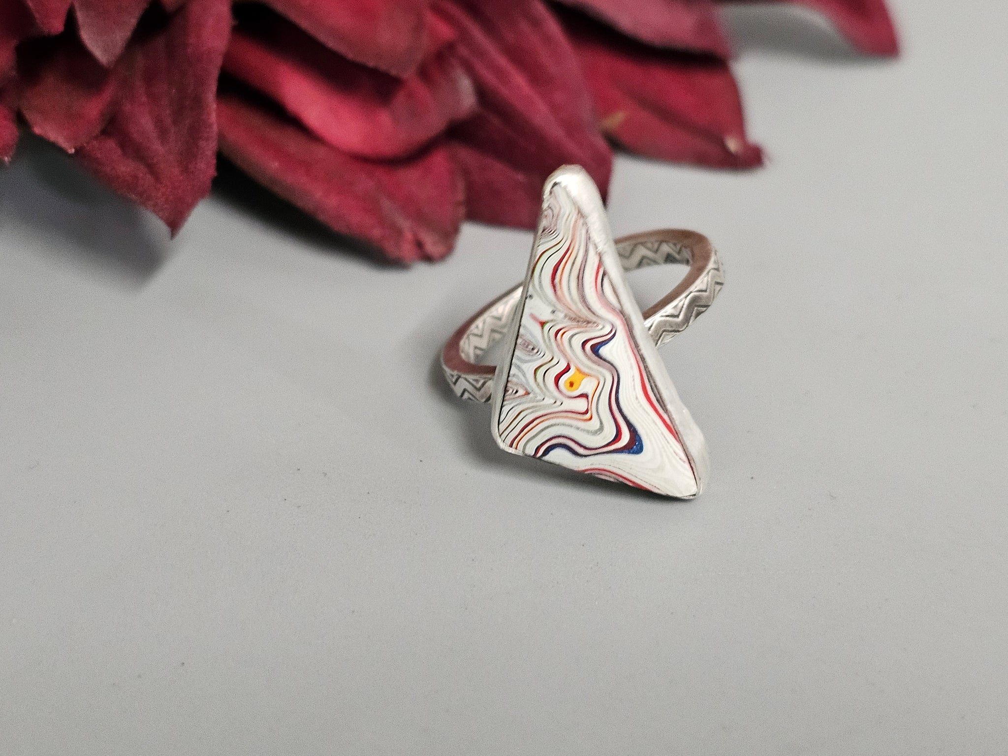 Fordite (ford paint) Triangle Ring, set with a plain bezel to accent that beautiful Stone.
