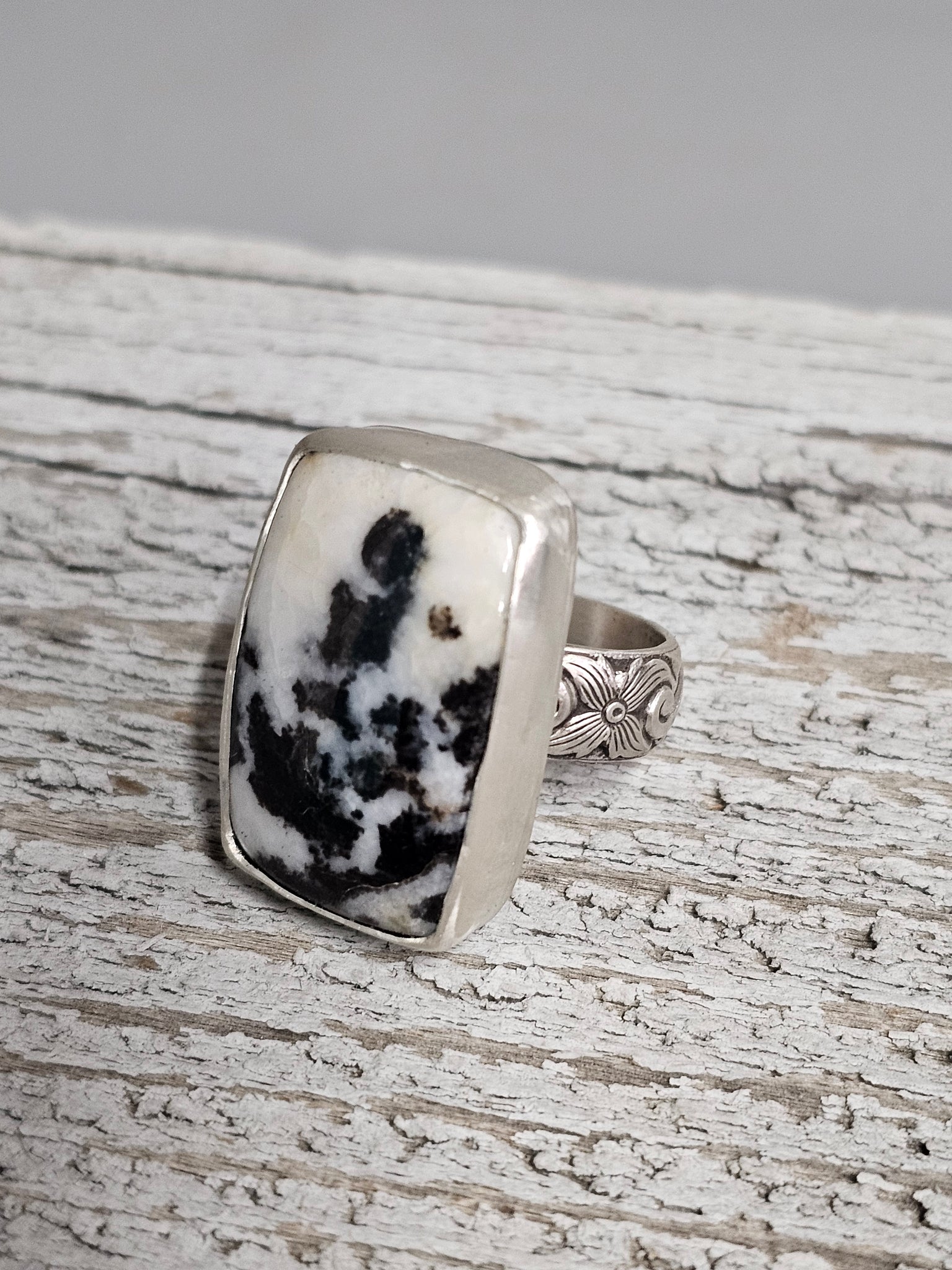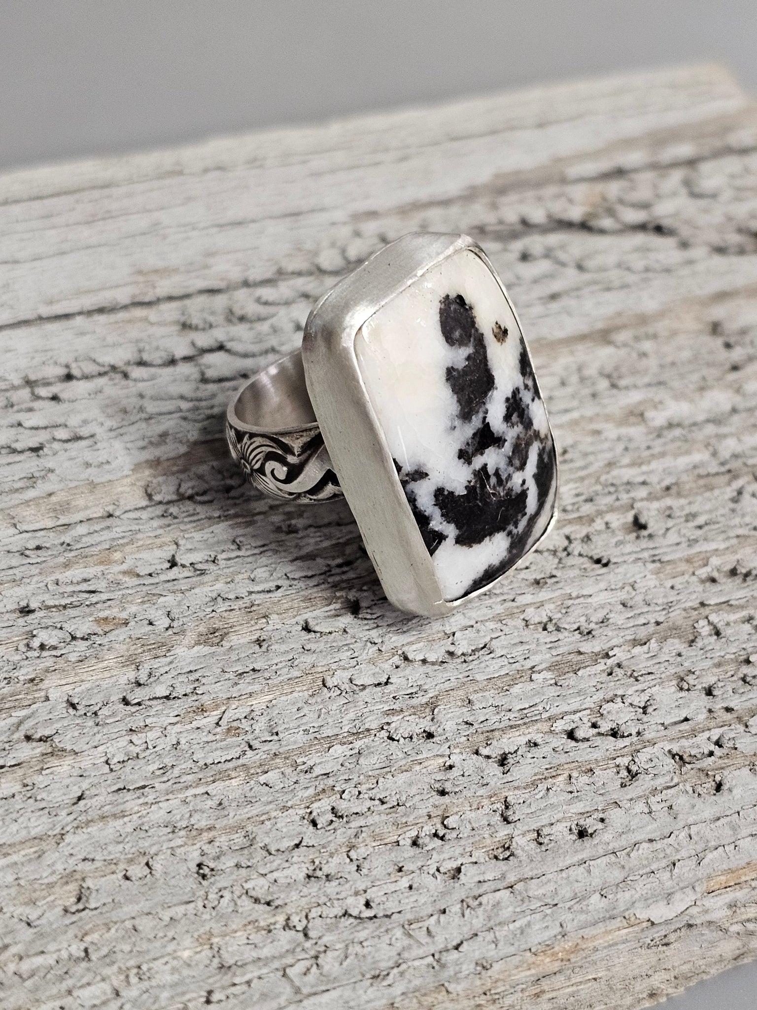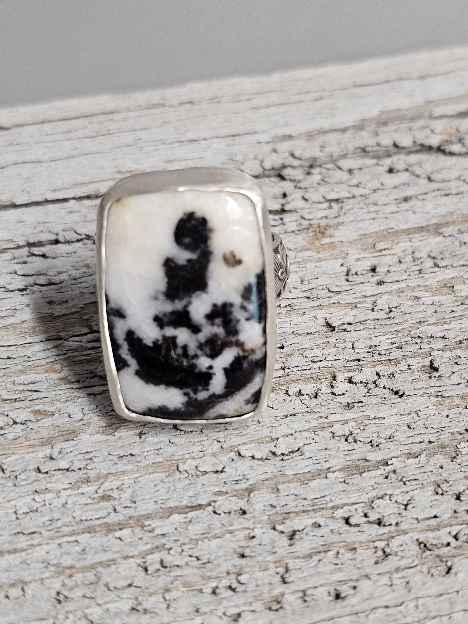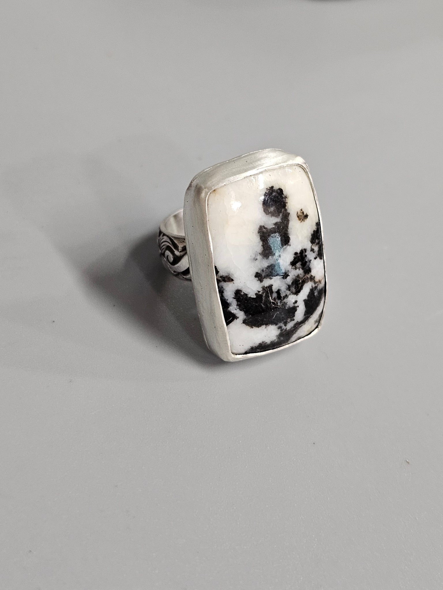 White Buffalo Stone Ring, set with a plan bezel to accent that beautiful stone.